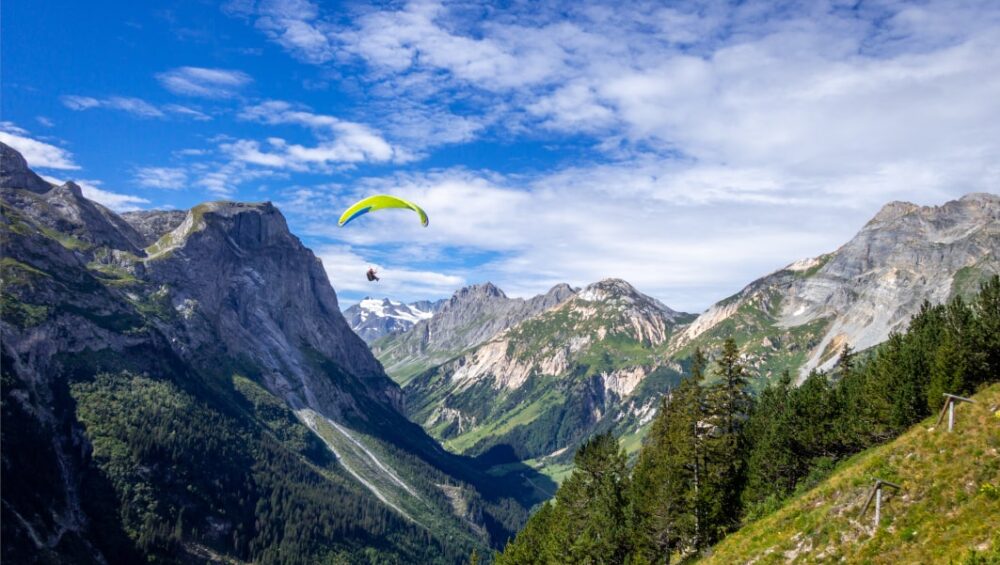 Il parapendio inoltre ha una superficie alare molto più grande rispetto a quella di un moderno paracadute da lancio e questo gli consente di veleggiare e salire nell’aria sfruttando le correnti termiche e dinamiche; ed è proprio questa la caratteristica fondamentale del parapendio, grazie alla quale un volo può durare ore.