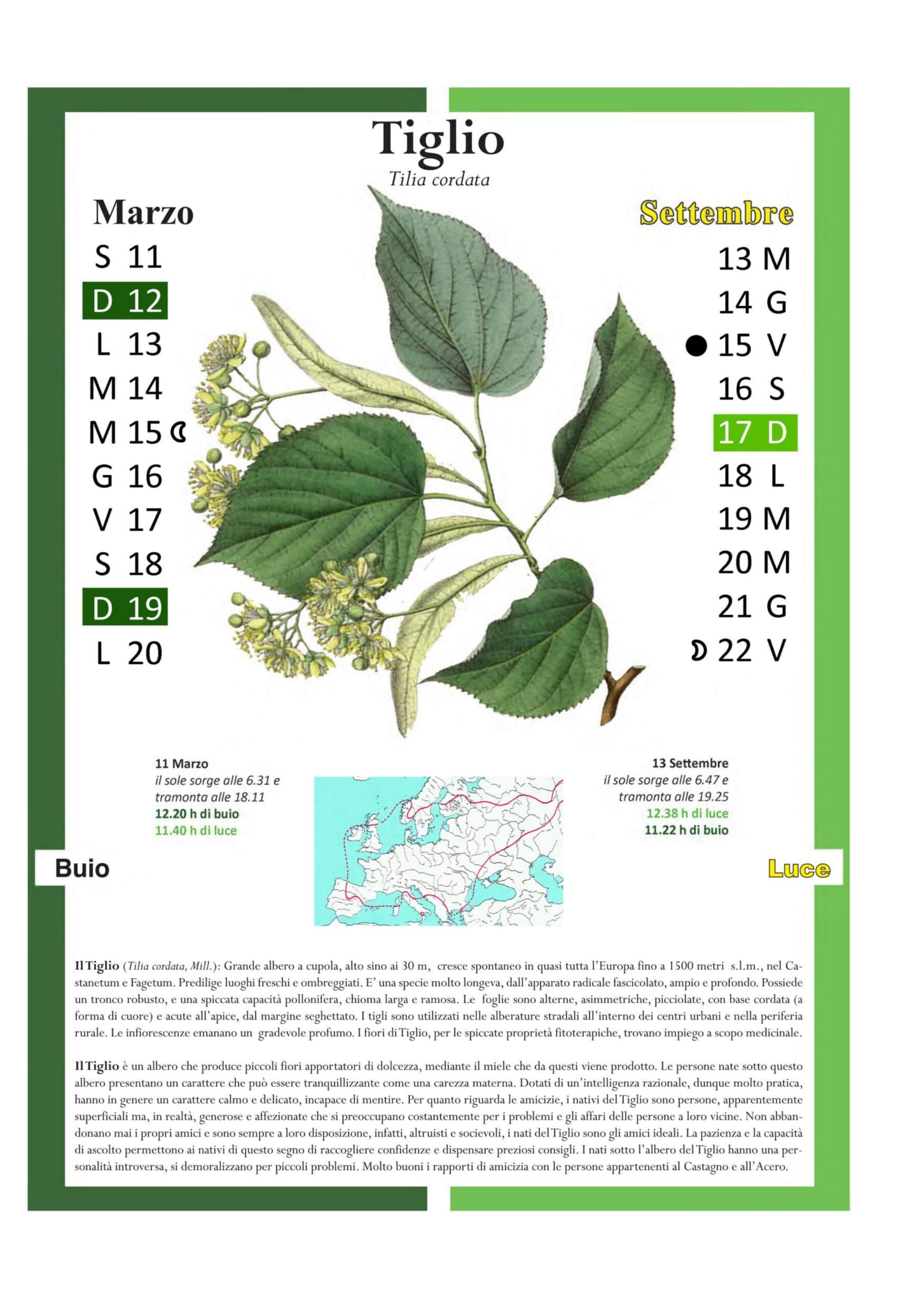 Nel fare tale associazione, si riscontra soprattutto se una persona sia venuta al mondo nel periodo di luce (dal 22 Marzo al 22 Settembre) o nel periodo di buio (dal 24 Settembre al 20 Marzo). Fanno eccezione quattro giorni particolari, i due solstizi e i due equinozi, giorni che segnavano il passaggio tra la luce ed il buio e viceversa. Solo a questi giorni particolarissimi venivano attribuite quattro piante esclusive, emblematiche in tutto il “vecchio mondo”.
